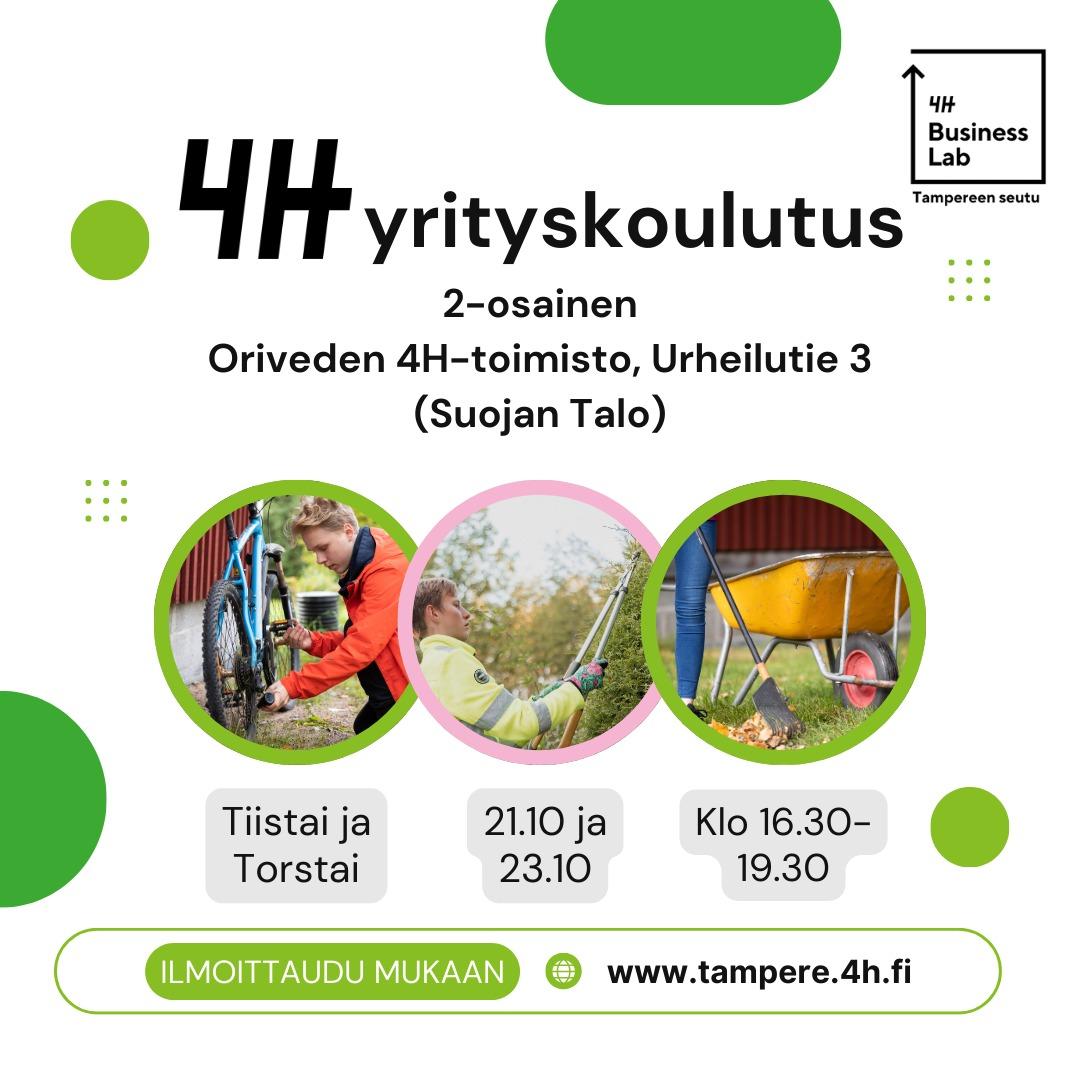 Tervetuloa tutustumaan työelämään 4H:n Yrittäjyys TETin parissa 17.11-21.11.2025 (vk 47) TET-jakso toteutetaan pääsääntöisesti Oriveden 4H-yhdistyksen toimistolla osoitteessa urheilutie 3.…